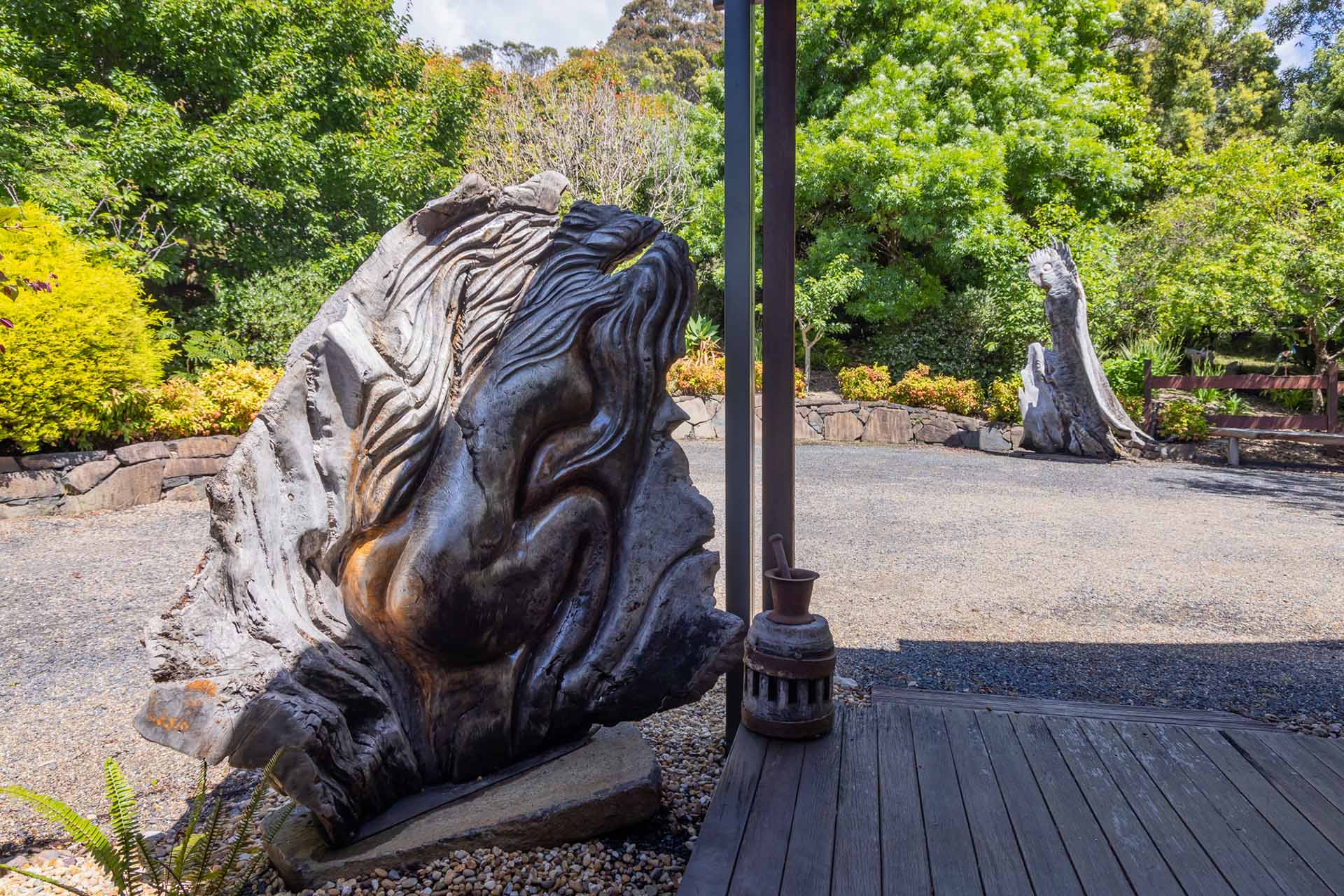 Guests are welcome to wander the property and explore the gardens and sculptural works, often accompanied by local wildlife including friendly kangaroos and the local wombat.