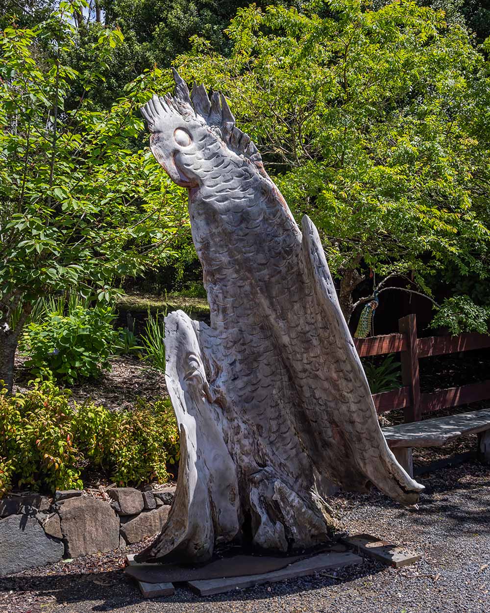 Peter’s inspiration enables the transformation of these natural and interesting pieces into magnificent works of art including a 3.5 metre high award-winning Black Cockatoo.